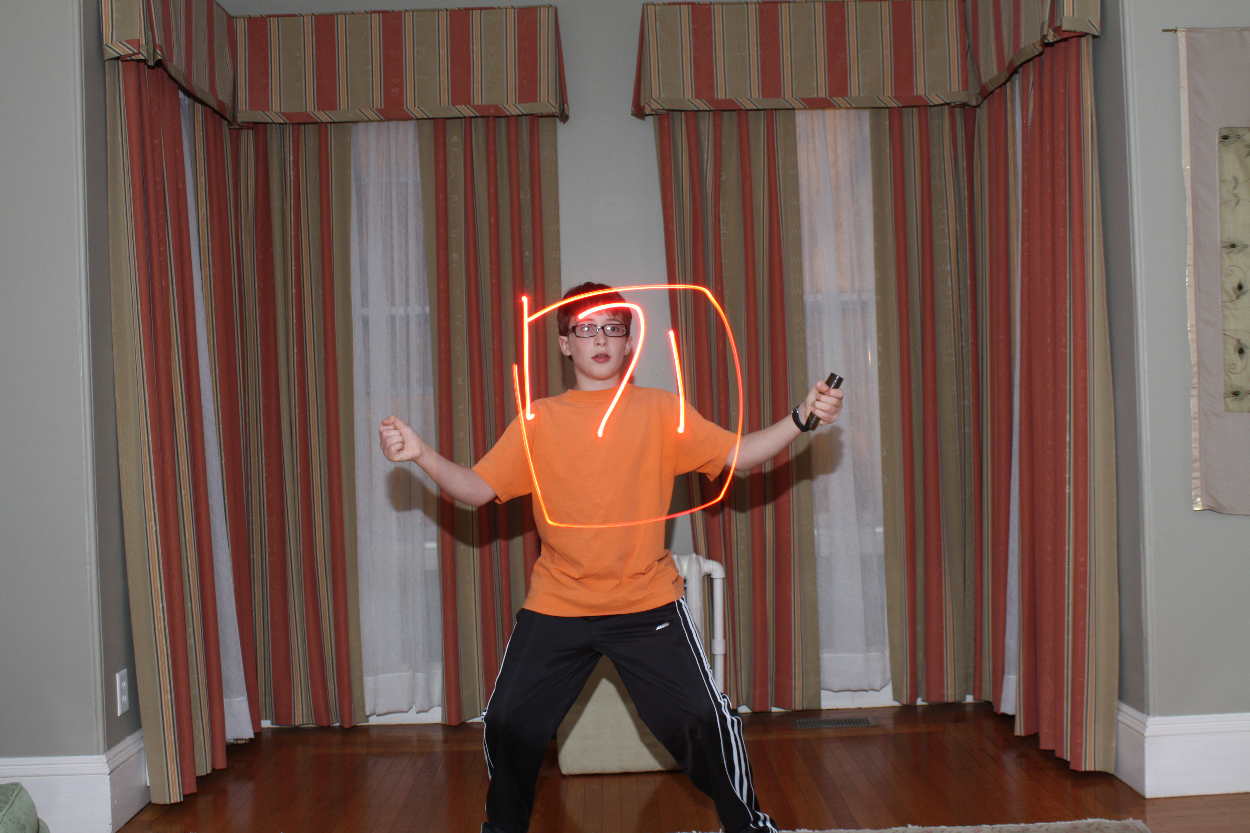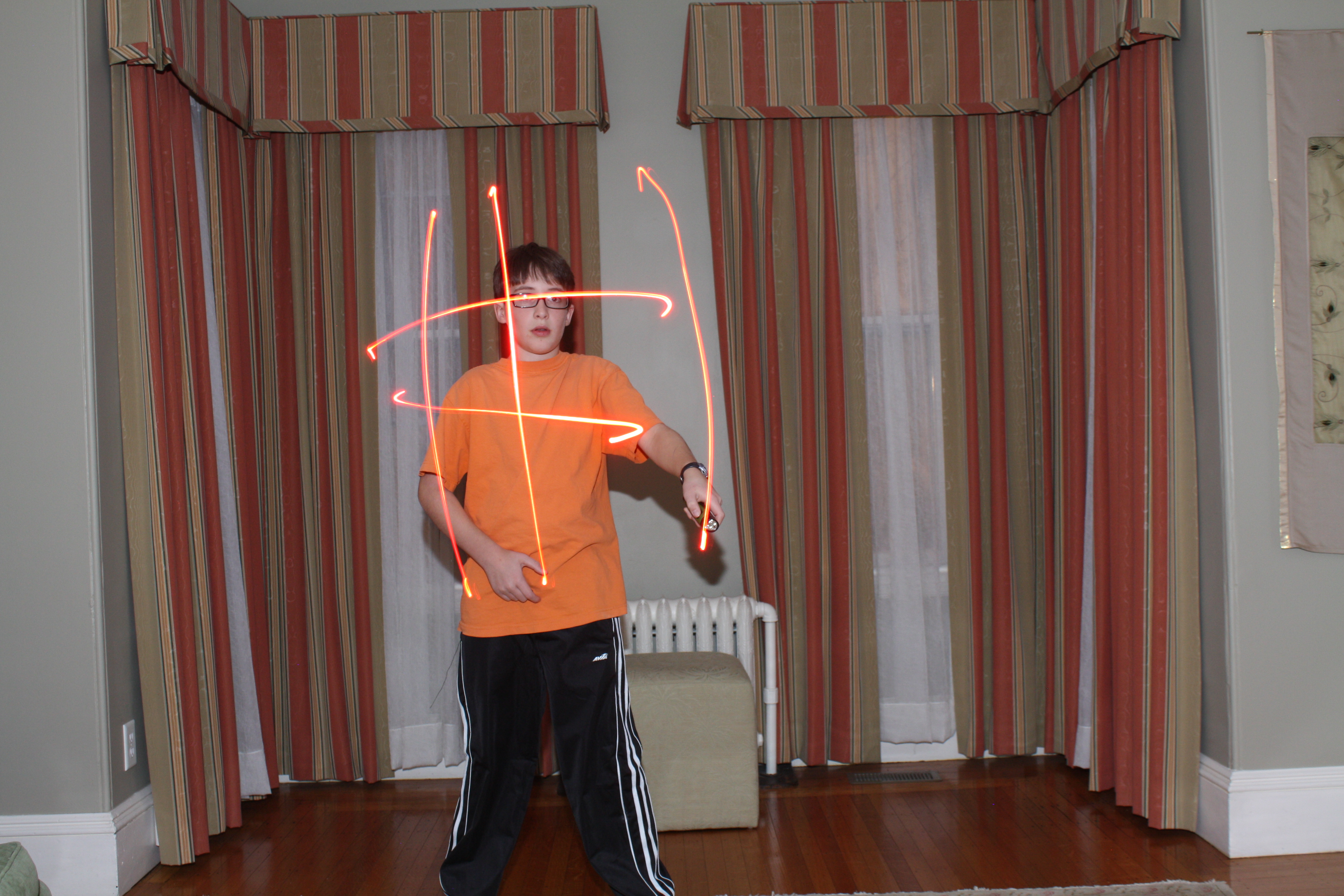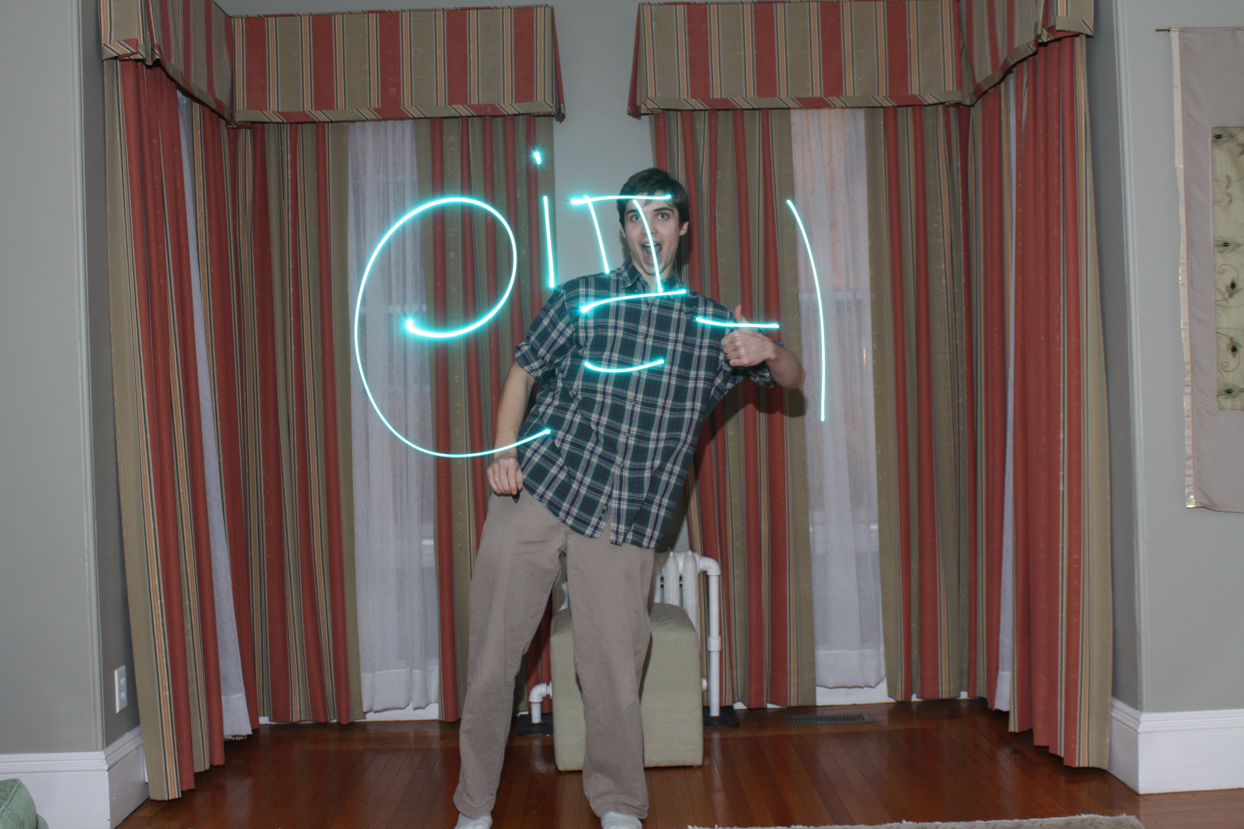 After shooting the cover, Benjamin and Jeremy wanted to continue making funny light paintings. They spelled out mathematical equations, fought with light sabers, and did some pretty rude stuff too. I've included the tamest pictures here. Click on any one for a full-size version.